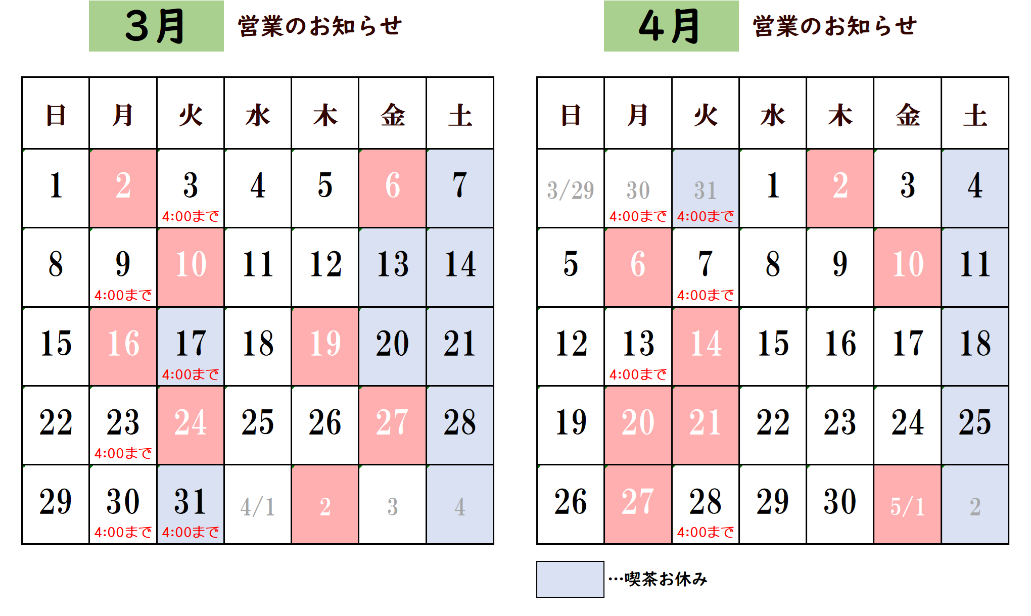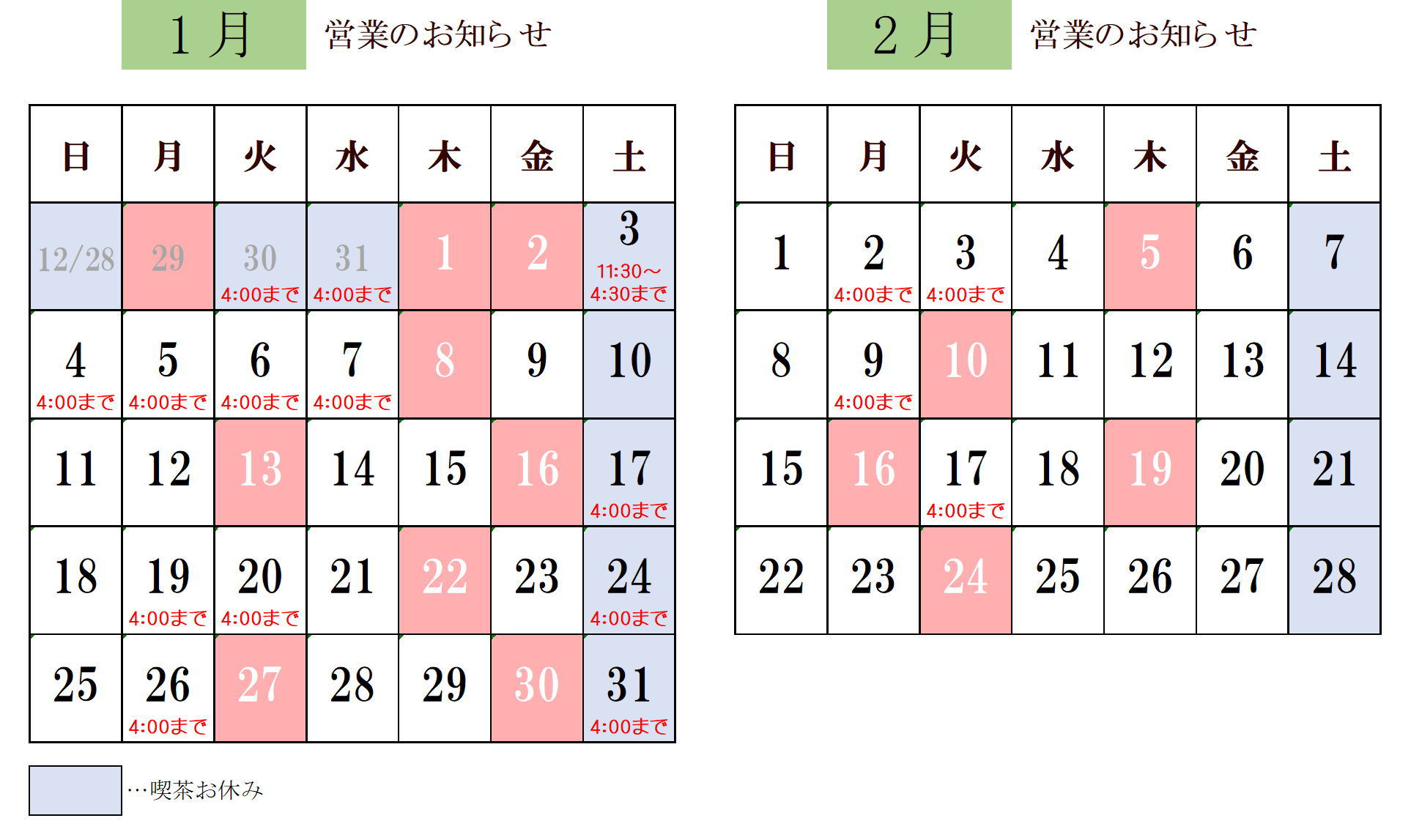 営業カレンダー